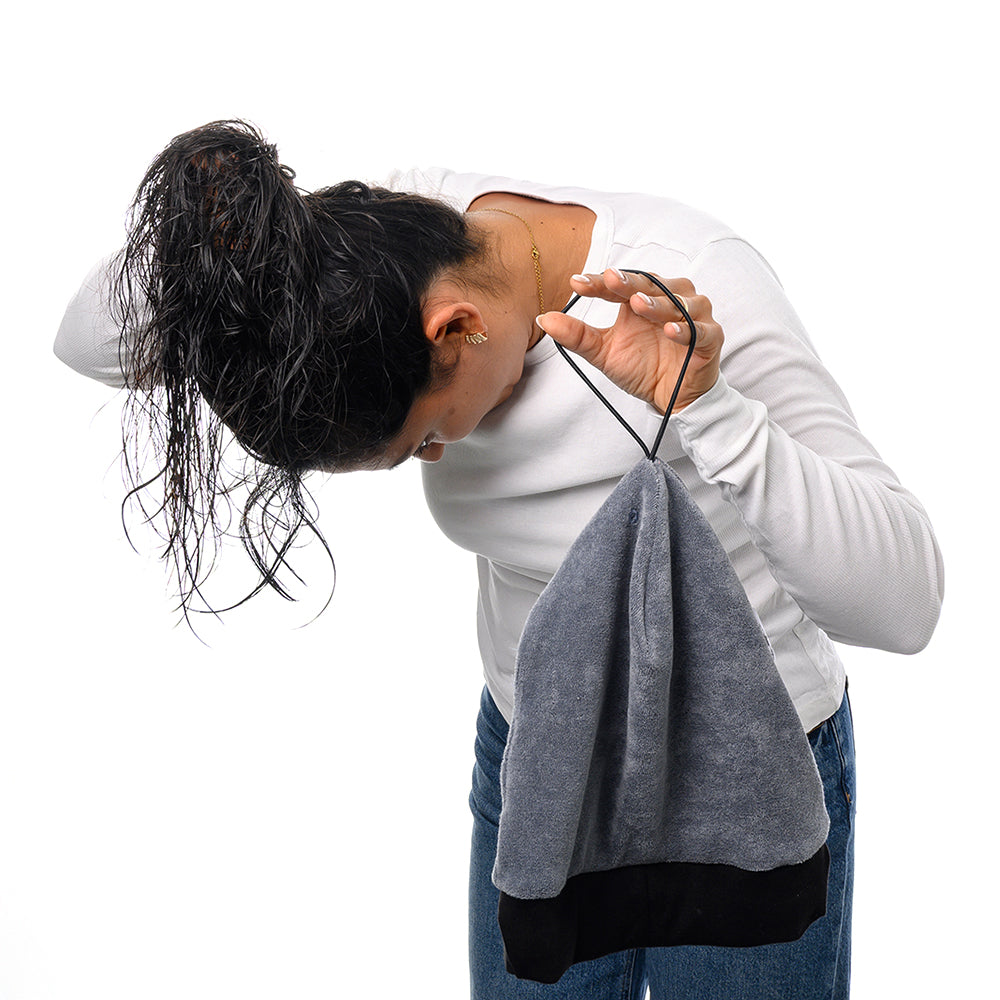Achte darauf, dass das Handtuchmaterial innen direkt an deinen Haaren beginnt – für maximale Saugkraft und Komfort.